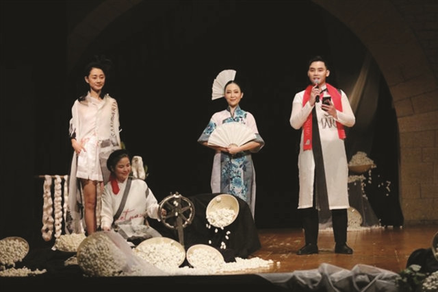| A fashion collection made of Bảo Lộc silk is performed with silkworm cocoons stretching at a show in San Marino in October. Photo courtesy of Vietnam Silk House |