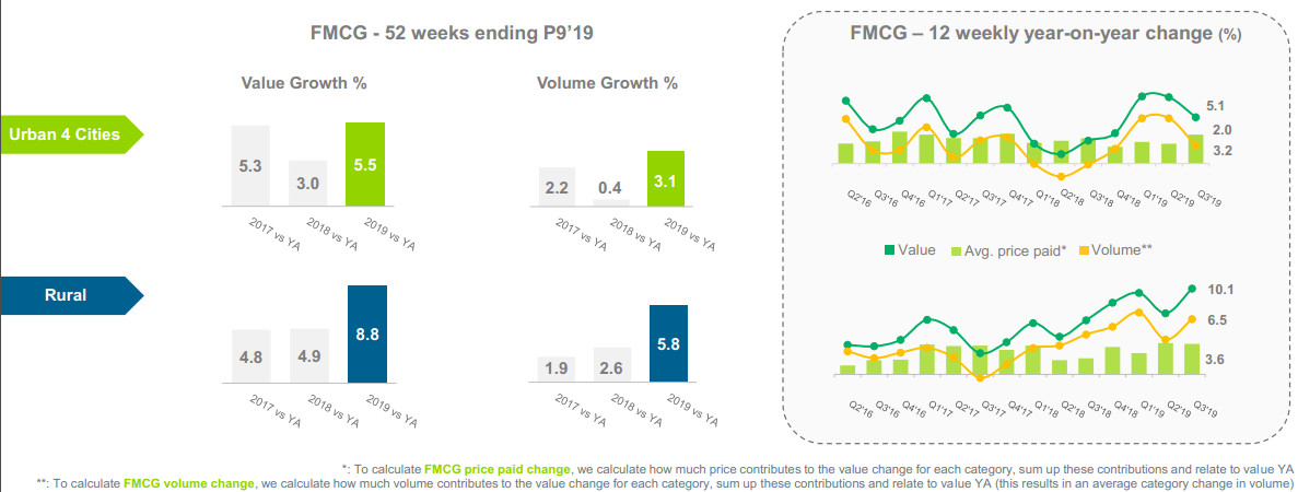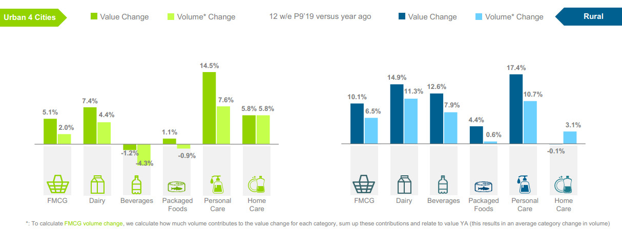 Beside the solid performance of Personal Care in both 4 urban cities and rural areas, Dairy has been also catching up in the third quarter, especially in rural areas. Beverages post a double-digit growth in the rural market, but still struggles to grow in 4 urban cities.