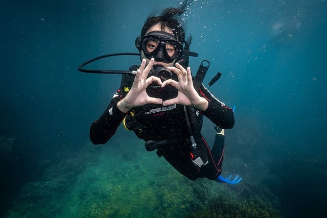 | A diver in the water off the Chàm Islands. The site is one of the most favourite destination in central Việt Nam. Photo courtesy of Đào Đặng Công Trung |