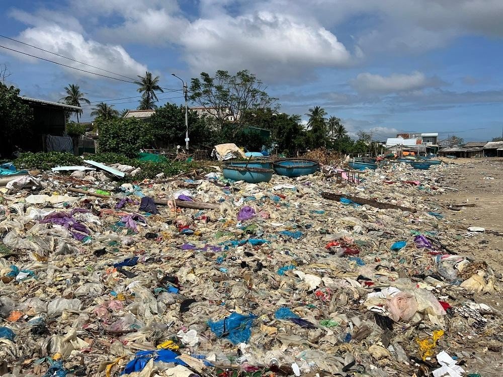 Doan Van Hoat from An Vinh Village said big waves and high tides brought the litter ashore, resulting in serious pollution in the area surrounding the beach.