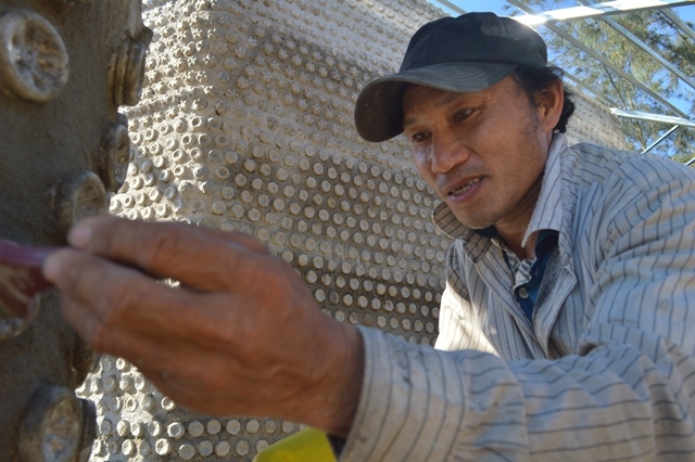 Nguyen Van Hai, a construction worker for the project, said it was more difficult and time-consuming than usual since they had to build the house depended on the shapes and sizes and the number of bottles. The bottle caps became the house's decorations so they must be geometrically in line to ensure the aesthetic.