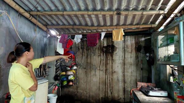 Nhuan's daughter-in-law Du Thi Hop said that whenever it rained, rainwater leaked everywhere in the house.