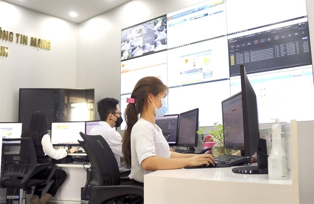 | Public employees work at the Security Operations Centre (SOC) and Intelligent Operations Centre (IOC) of Ninh Thuận Province. — VNA/VNS Photo |
