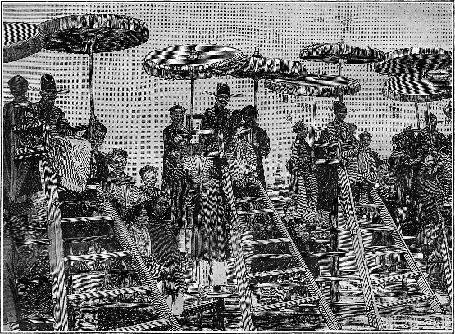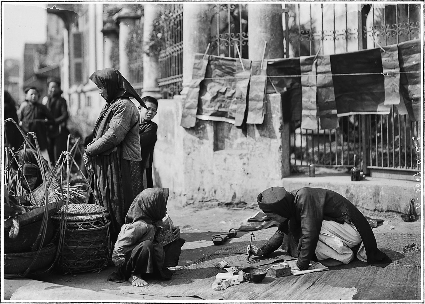 Workers in the Cho Dien mineral mine (Ban Thi commune, Cho Don district, Bac Kan province) in the early 20th century.The exhibition of mechanical products at the Dau Xao House in Hanoi in 1928.A market street in Hue, as illustrated in the magazine 'L'Illustration' in 1883.A corner of Dong Xuan Market in Hanoi during the early 20th century.At Buoi Market (Hanoi). During each market session, people came to Buoi Market to experience the atmosphere of a pure rural market. A woman was buying jewelry at Chan Hung gold shop on Hang Bac Street. Since ancient times, Hang Bac has been a gathering place for skilled craftsmen. Playing human chess in Saigon. Human chess is a folk game often organized during traditional festivals in Vietnam. Essentially, it is a game of chess using people instead of chess pieces to move on the board.Children in Hanoi buying lanterns for the Mid-Autumn Festival.A scene from a Nam Giao ceremony during the Nguyen Dynasty. The Nam Giao Altar was where the Nguyen Dynasty kings held ceremonies to worship heaven and earth every spring. It is the only altar that remains relatively intact in Vietnam, and it is also the only one that still exists among many ancient altars in Hue.The examination ceremony in Nam Dinh in 1888.An outdoor art class.A calligrapher selling calligraphy works during Tet.The carpenters are carving wooden objects and paintings by artist Thang Tran Phenh. Famous before attending the Indochina College of Fine Arts, artist Thang Tran Phenh is considered one of the first bricks to lay the foundation for the modern "house of Vietnamese fine arts". At the same time, he also played a pioneering role and made significant contributions to Vietnamese stage art.