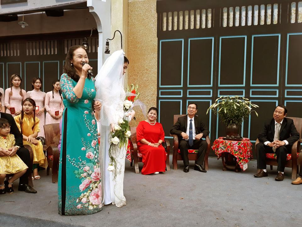 “Thanks to advice and suggestions, we have partly recreated the traditional wedding with the bride holding a wedding bouquet made of gladiolus flowers, nine wedding caskets, wooden tables and chairs covered with the peacock fabric, and the music also uses international songs that were popular at that time,” the Deputy Director added.