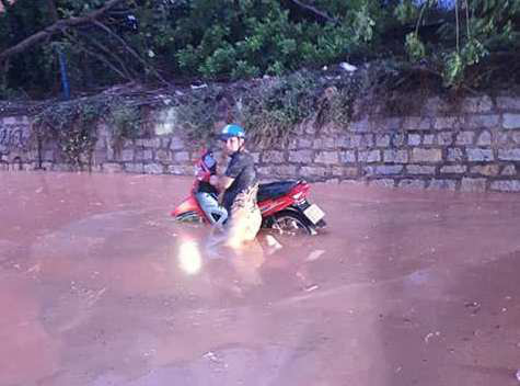 Huynh Thuc Khang Street covered by the mud