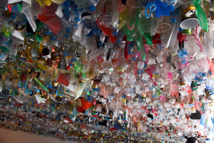 Single-use plastics, including as straws, nylon, water bottles, and home appliances, have been transformed into large-sized art pieces. The exhibits on show reveal the huge amount of waste that an average family of four generates over a six-month period.