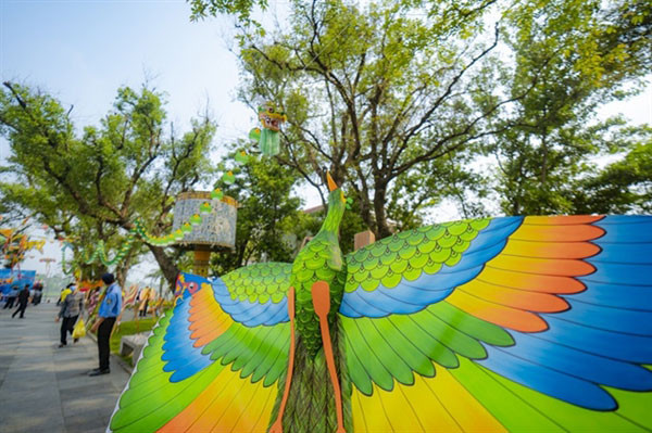 In April, at a kite festival, these artisans presented nearly 100 traditional kites in different shapes such as dragons, phoenixes, peacocks, butterflies, swallows, and goldfish. These kites have a wingspan of 1.5 metres to 3 metres.
