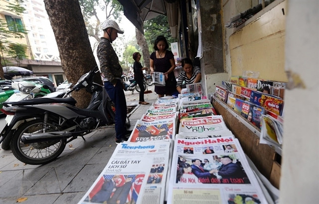| A news stand on the street in Hà Nội, a rare sight nowadays as the digital world is reshaping the journalism and communication landscape. — VNA/VNS Photo |