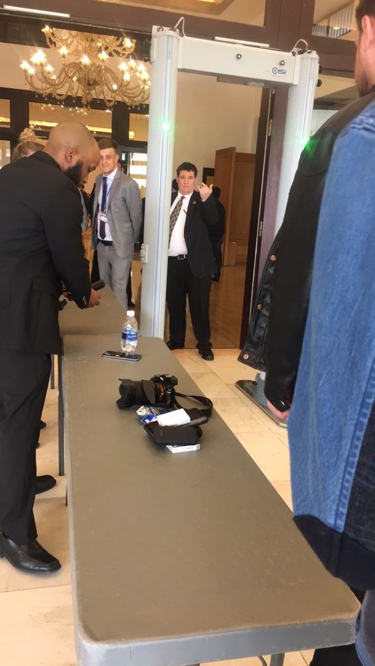 Jounalists are all waiting at the Marriot Hotel ahead of the press conference with President Trump.