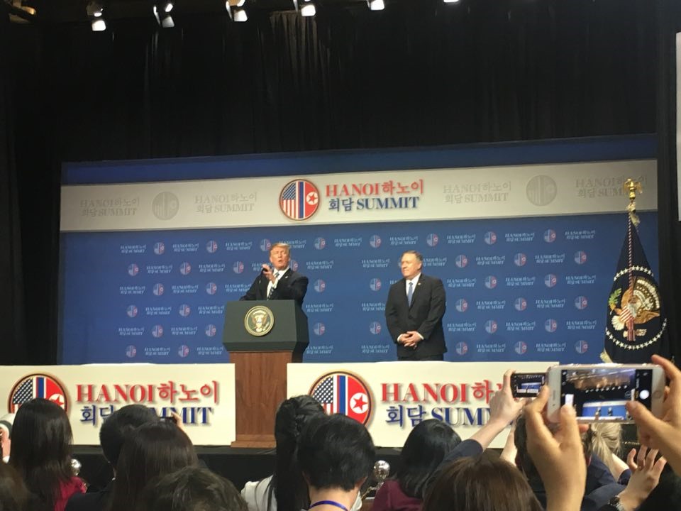 President Trump is reportedly set to fly out on Air Force 1 after his press conference at Hanoi Marriot Hotel.