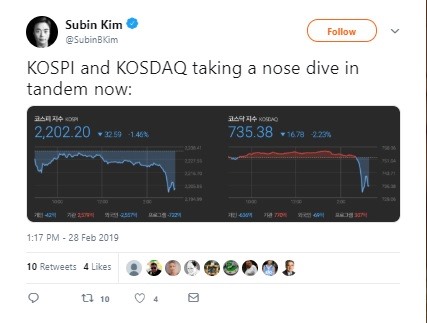 South Korean market seems to fall amid reports on potential collapse of Trump-Kim talks