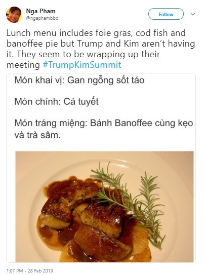 A trip to Vietnam just wouldn’t be the same without a nice bowl of pho. And that’s exactly what the worldwide media are tucking into right about now. It's proving so popular at the media centre there's even a queue forming. Wonder what Kim and Donald are eating for lunch?