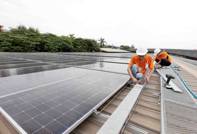 | Workers inspecting the wiring from rooftop solar panels at the Maxport 8 factory in Vũ Thư District, Thái Bình Province. VNA/VNS Photo Trần Việt |