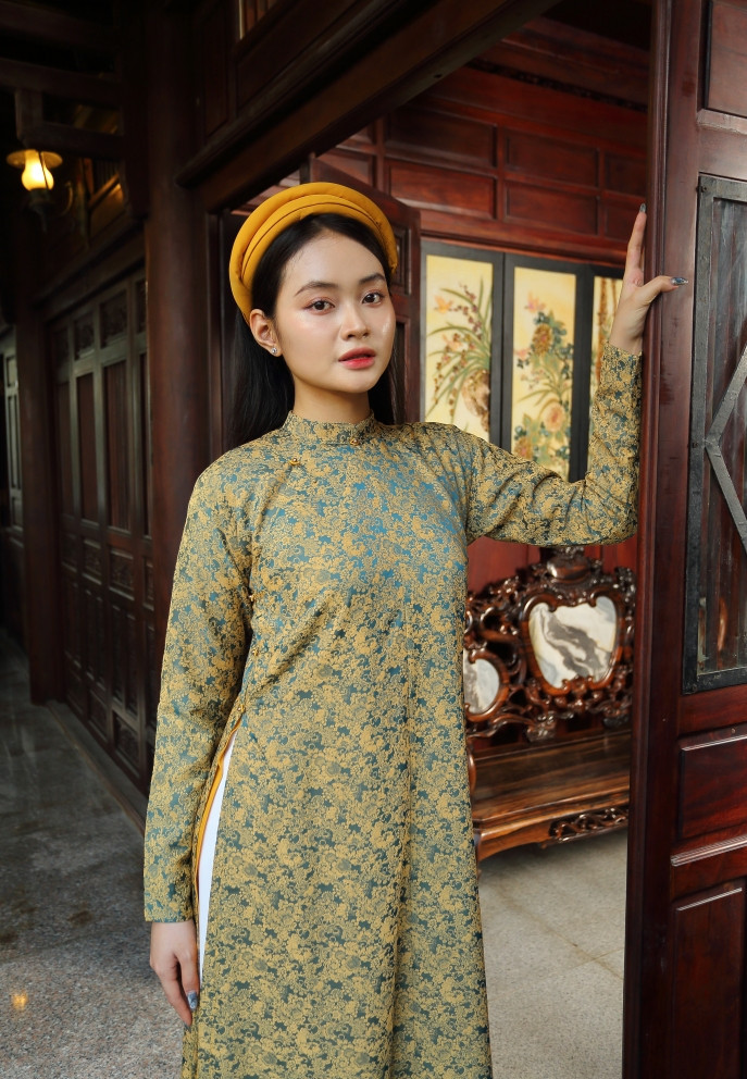 Contemporary patterns have also been thoughtfully integrated, symbolizing the vibrant continuity of the five-panel Ao Dai’s timeless values in modern life.