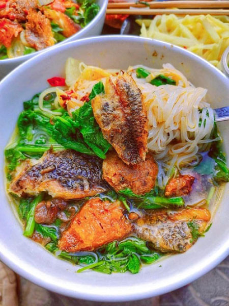 Two places you can try are ‘Canh Bun Ca Thai Binh’ at Hang Bai Street in Hoan Kiem District and ‘Bun Ca Thai Binh’ at Thai Thinh Street in Dong Da District.