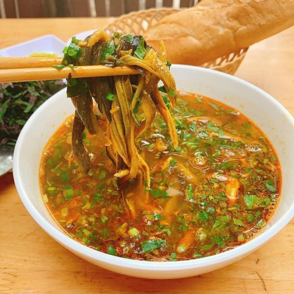 To make this specialty, people of the rice-producing province use only freshwater fish, with the bones thoroughly pounded and simmered to get the stock. Because all the steps require the cook’s meticulousness, for many foodies, searching for the fish soup is like looking for a needle in a haystack.