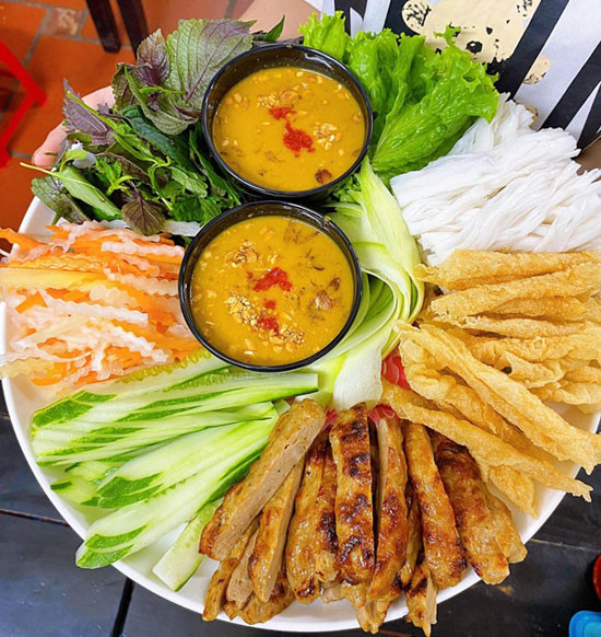 One Nem nuong serving is nutritious enough with herbs, raw vegetables, carrots, radishes and grilled pork, so the dish is suitable for sisters who want to stay in shape without fasting.