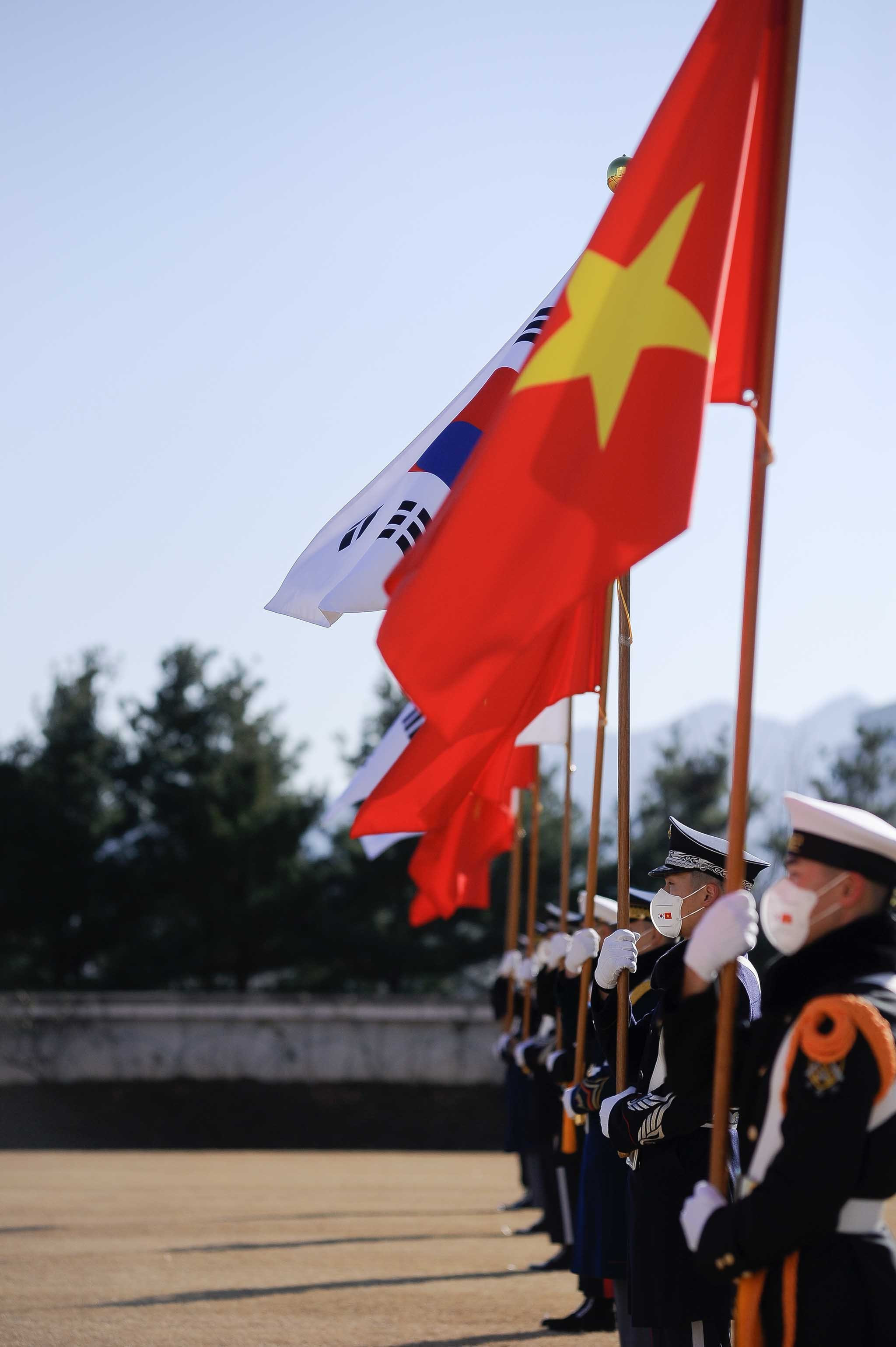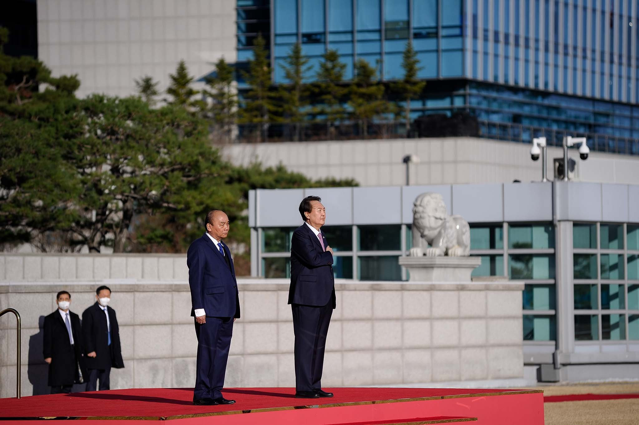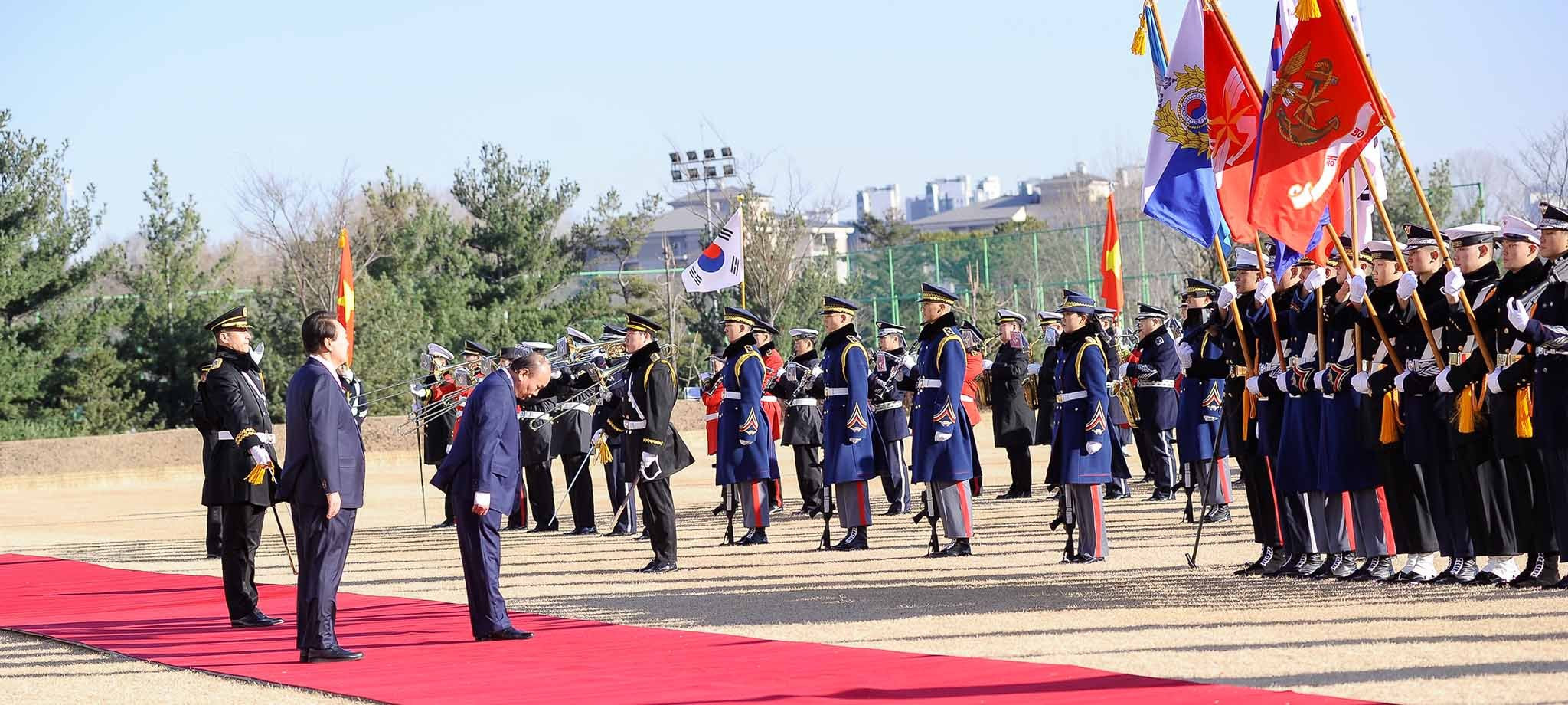 President Phuc was welcomed in Seoul with a 21-gun salute which is given to a foreign head of state during a State-level visit. Both presidents later reviewed the guard of honour.