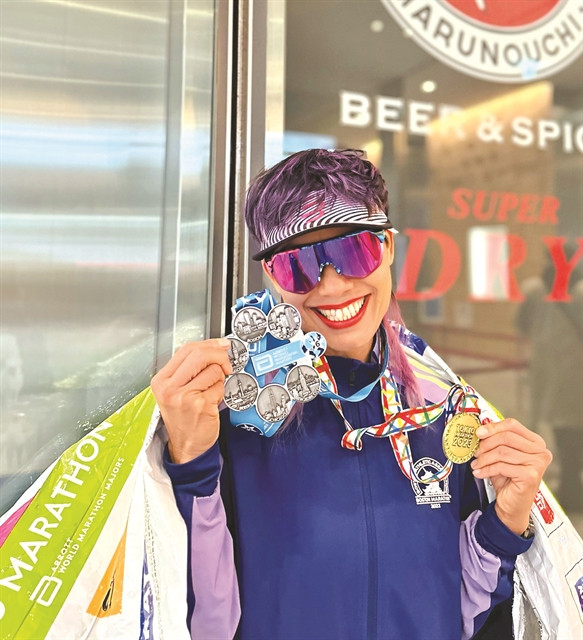 | Nguyễn Tiểu Phương poses with her 2023 Tokyo Marathon and the Six Star Medal awarded to marathoners who complete all six World Marathon Majors. — Photo courtesy of Nguyễn Tiểu Phương |