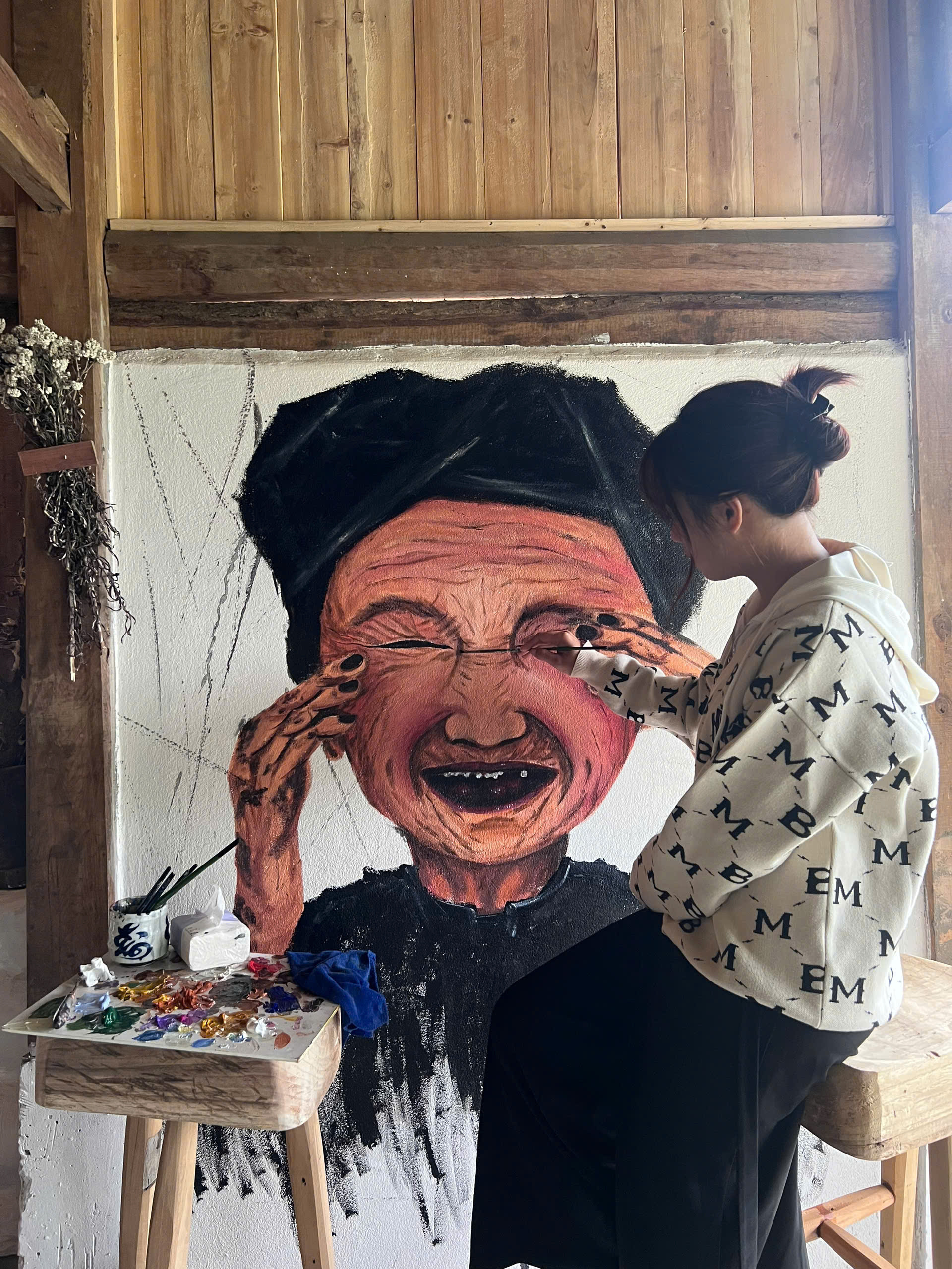 In August 2024, Joei Lim from Singapore visited Sa Pa, painting a canvas made from local hemp fabric. “Sa Pa is breathtaking, not only in scenery but also in its cultural traditions,” he said. “We made two pieces on handwoven hemp, a unique experience I’ve only found here. I’ll tell friends and family about Sa Pa, and I hope to return one day to experience more.”
