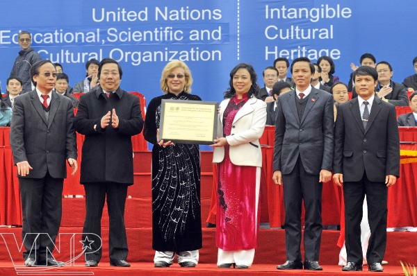 For the above reasons, the Saint Giong Festival is immortal and is worthy to be honoured. At 6pm (10:20 pm in Vietnam) on November 16, 2011 in Nairobi, Kenya, the Saint Giong festival in Phu Dong Temple and Soc Temple in Hanoi was officially recognized as a world intangible cultural heritage of humanity by UNESCO.