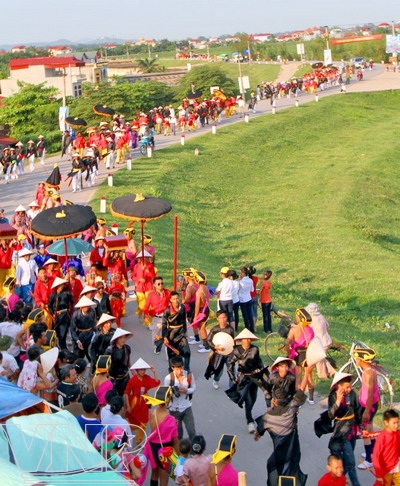 For many years the villagers in these two communes have annually organized the festival on January 6 and April 9 according to the lunar calendar to honour their national hero. The French researcher, G. Dumoutier, was so impressed by the value and jubilant atmosphere of the Saint Giong festival that he wrote in his book, “Revue de l’histoire des religions, Paris 1893”: “The Saint Giong festival, the most moving scene that we have ever seen in the north of Vietnam will live forever in the mind of each viewer. In our ancient Europe if people will feel proud of celebrating a historical event taking place two or three hundreds of years ago.”