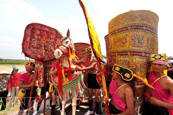On April 6, the villagers carried out the ceremony of taking water, which started the festival to clean weapons before the battle and pray for good weather and bumper crops.