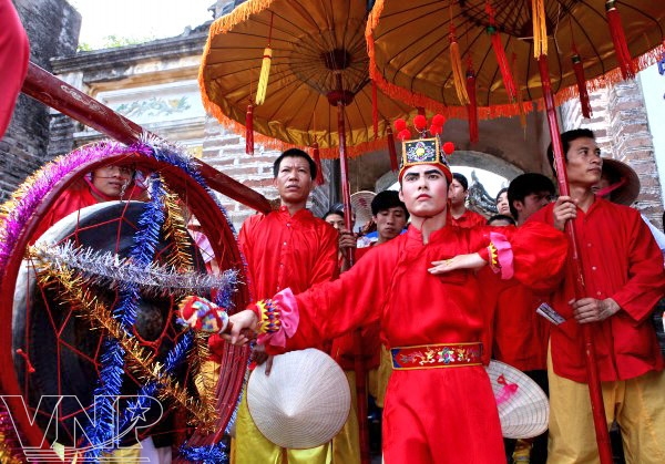 Nowadays, to commemorate his exploits, people in many places in the Red River delta region annually organize the Saint Giong festival with unique rites imbued with the ancient Viet’s cultural imprints. However, the biggest and most special are the Saint Giong festivals in Phu Dong Temple in Phu Dong Commune, Gia Lam District, Hanoi – his birthplace and in Soc Temple in Phu Linh Commune of Soc Son District, Hanoi - the place where he flew into the heavens.