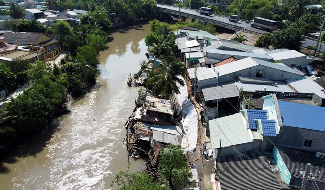 Nguyễn Hữu Thiện, an independent researcher, said the low-lying topographical features of the Mekong Delta region create more risk of erosion, especially during high tide in the coastal area, and heavy rainfall and in the wet season.