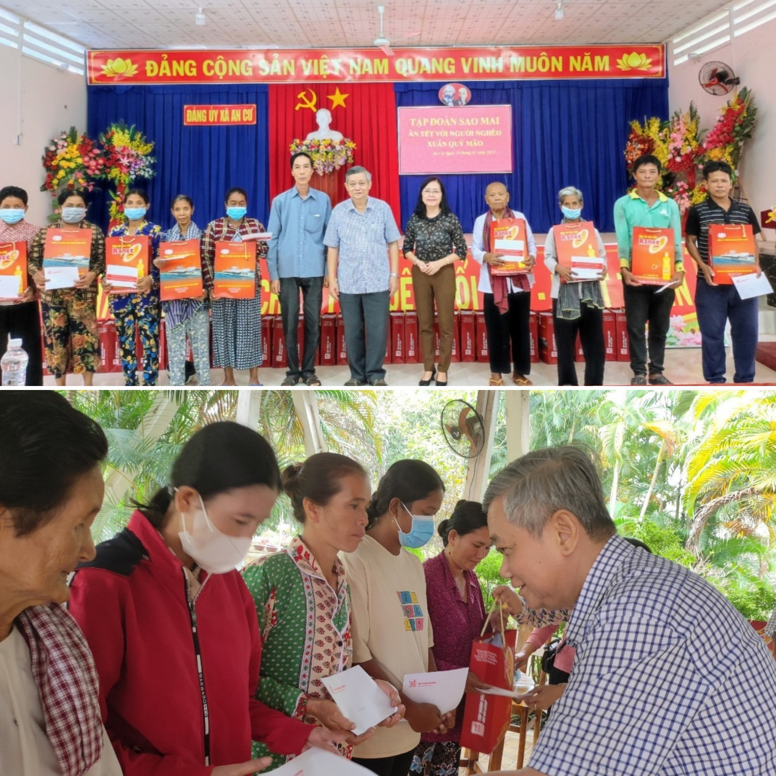 Through the program "Sao Mai celebrates Tet with the poor" with a total budget of about VND12 billion, Sao Mai Group has helped thousands of poor families, lonely old people, people infected with Agent Orange, blind people, orphans, people with disabilities in the provinces where host the group’s projects to have a warm Tet holiday.