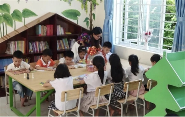 “In fact, my job as a librarian is harder than that of a teacher because I have to simultaneously teach life skills and moral lessons, and organise reading activities in classrooms, the library room, and even during outdoor break," Phạm Thị Chiêm, a school librarian in Thái Bình Province, said.