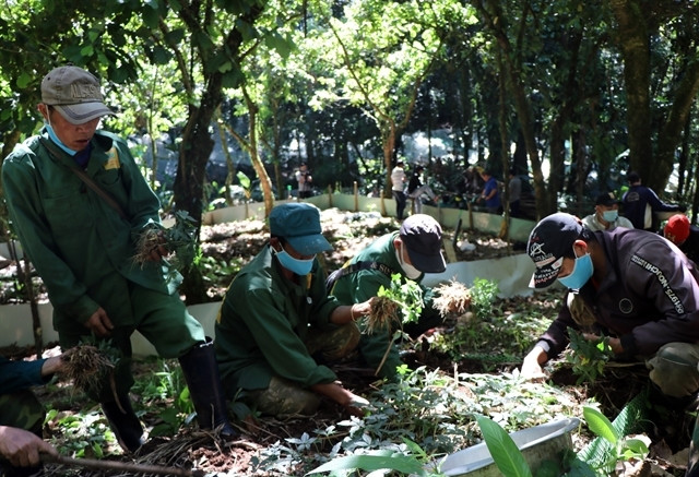 | Workers from the Ngọc Linh Ginseng Joint Stock Company planting ginseng on Ngọc Linh mountain in Kon Tum Province. |