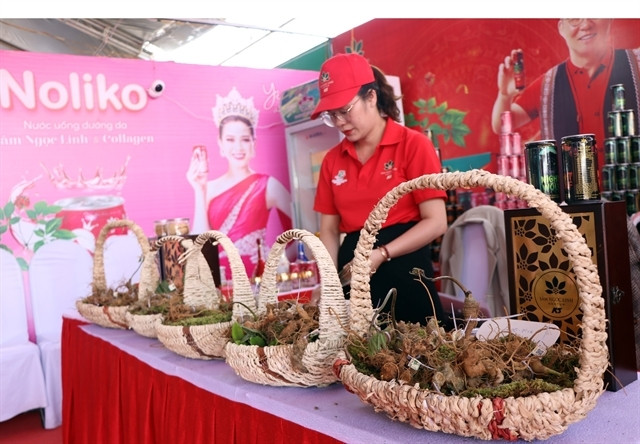 | Ngọc Linh ginseng products at the Ngọc Linh Ginseng Fair at Tu Mơ Rông District Centre in Kon Tum Province. |