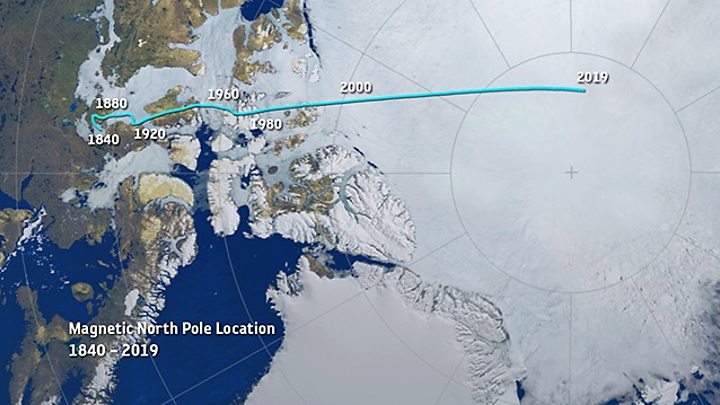 The team's latest modelling indicates the pole will continue to move towards Russia but will in time begin to slow. At top speed, it's been making 50-60km a year.