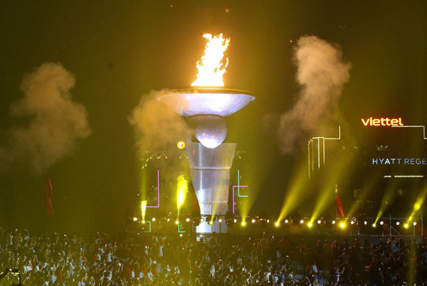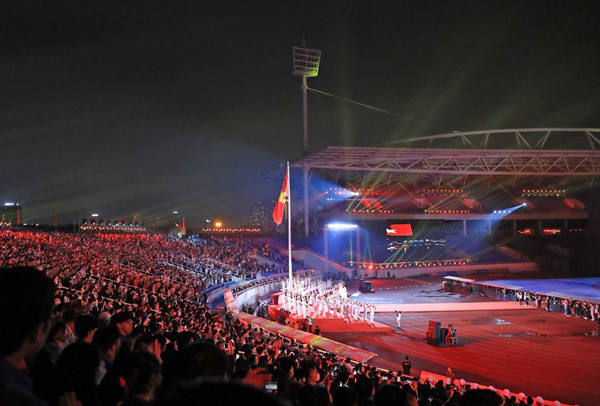 The Games came to life in a flourish of colour, dance and performance, all under the banner of the Games slogan For A Stronger Southeast Asia. (Photo: VNA)A dance with bamboo, a symbol of Vietnam will and strong spirit. (Photo: VNA)The Southeast Asian Games Federation and SEA Games 31 flag hoisting ceremony at the opening. (Photo: VNA)The Vietnamese contingent on the stage of My Dinh National Stadium for parade. (Photo: VNA)The flag-raising ceremony takes place in solemn atmosphere. (Photo: VNA)The flag-raising ceremony takes place in solemn atmosphere. (Photo: VNA)The athletes parade followed with representatives from Brunei Darussalam, Cambodia, Indonesia, Laos, Malaysia, Myanmar, The Philippines, Singapore, Thailand, Timor-Leste, and Vietnam. (Photo: VNA)The ceremony looked to not only popularise images of Vietnam but also express the country readiness for integration, creativity, and contribution For a Stronger Southeast Asia as the theme of the Games goes. (Photo: VNA)The flags of the Southeast Asian Games Federation and SEA Games 31 come into My Dinh National Stadium. (Photo: VNA)Malaysia contingent. (Photo: VNA)Cambodia contingent. (Photo: VNA)The torch ceremony set the flame alight, and let the Games begin. (Photo: VNA)The opening ceremony ended with the Games official song Let’s shine, delivered by famous singers Hong Nhung, Tung Duong and the Oplus band. (Photo: VNA)After President Nguyen Xuan Phuc delivered a speech to officially open the regional sports event, fireworks exploded at My Dinh Stadium. (Photo: VNA)This is the second time Vietnam hosted the region biggest sports competition, the first time being in 2003. (Photo: VNA)