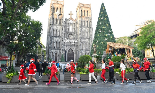 | Hồ Gươm Walk Racing Team members train on December 23 to celebrate Christmas. They will take part in the first major event of walk racing on January 1, 2024, in Hà Nội. — Photo courtesy of Triệu Việt Linh |