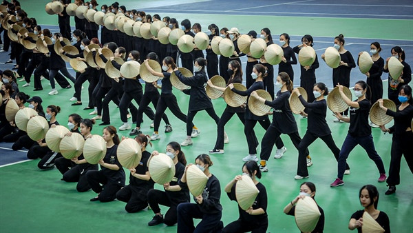 Vietnamese dancers practise performances with bamboo, a symbolic tree of the country. — Photo baovanhoa.vn