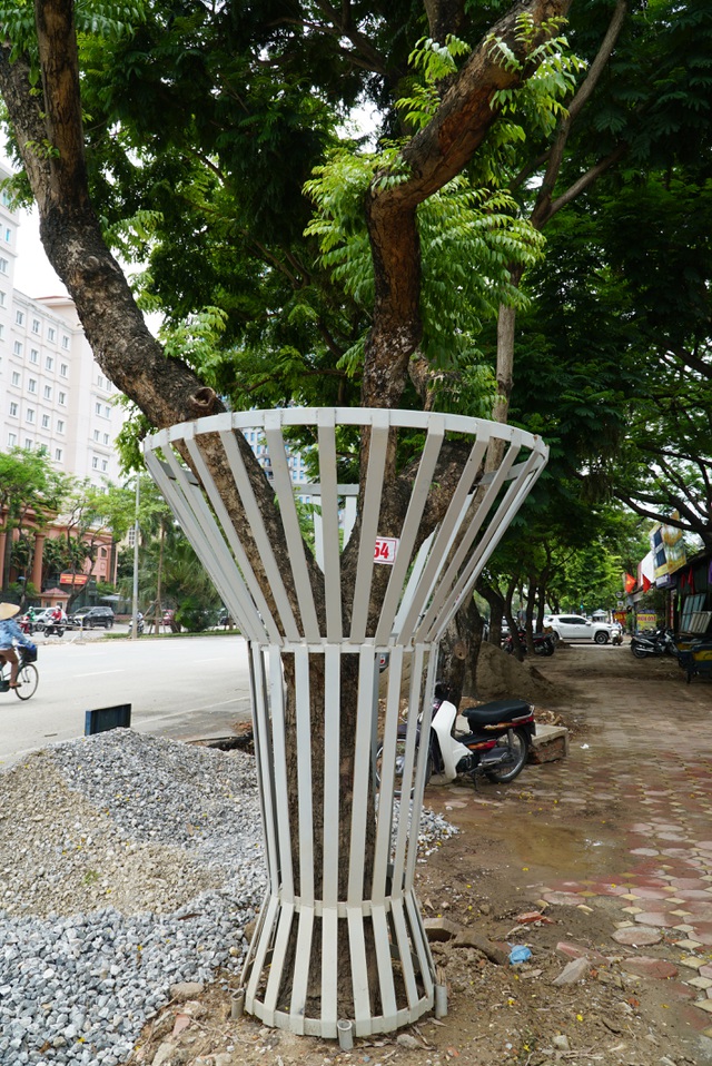 The valuable dalbergia tonkinensis trees are protected by fences on Nguyen Van Huyen Street.