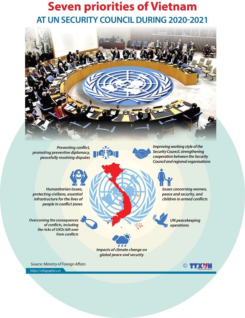 From January 1, 2020, Vietnam will officially assume the role of a non-permanent member of the United Nations Security Council (UNSC) for the 2020-2021 tenure.">
