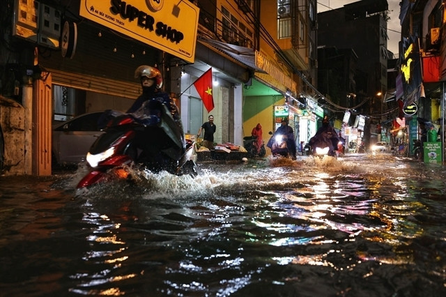 | Heavy rain causes flooding on Bùi Xương Trạch Street, Thanh Xuân District. — VNA/VNS Photo Tuấn Anh. |