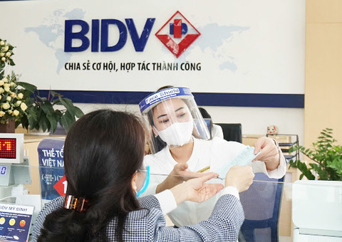 A teller of Bank for Investment and Development of Vietnam (BID) wears a mask. The bank's shares lost 6.5 per cent on Monday. — Photo courtesy of BIDV |