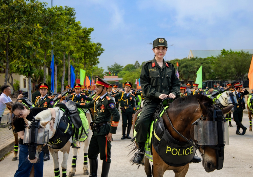 Recently, she had the opportunity to meet and perform for police officers at the A50 training areas in Dong Nai, delivering her song under the scorching April sun.