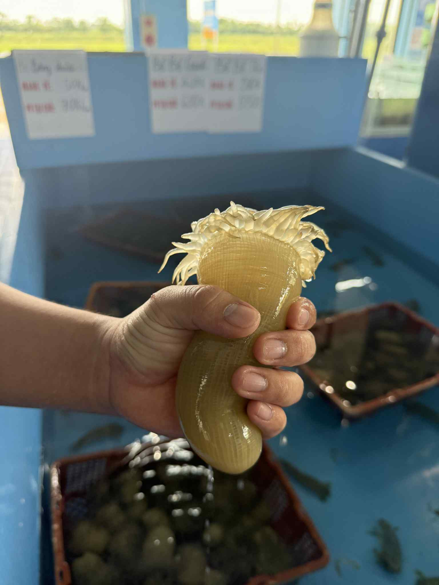Freshly caught rum bien retain water, with each kilogram containing about 6 to 10 pieces depending on size. Prices range from VND 300,000 to 400,000 per kilogram (USD 12 - 16).