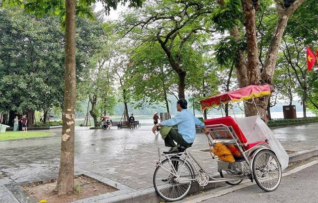 | Cyclo drivers, who run a popular tourist activity in Hà Nội, see few or no customers on rainy days. — VNA/VNS Photo |