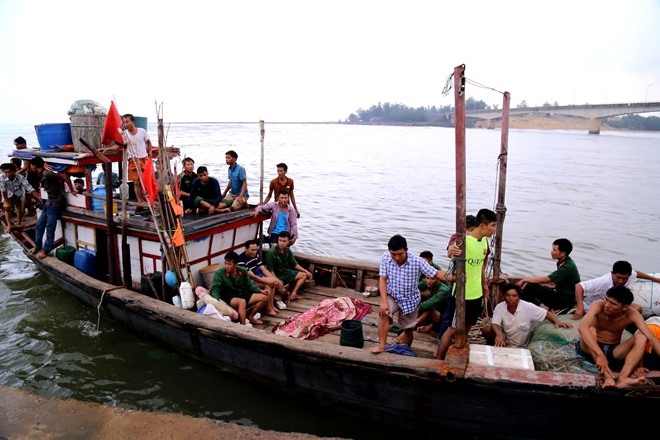 A fishing vessel brought victims ashore after the ship Ngoc Tuan 01 sank off Quang TriProvince.