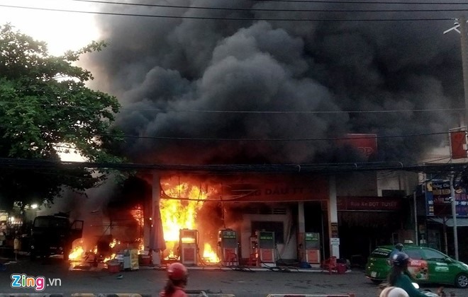 The station, located on Quang Trung Street in the Gò Vấp District’s Ward 8, suddenly burst into flames at about 5pm, after several loud explosions.