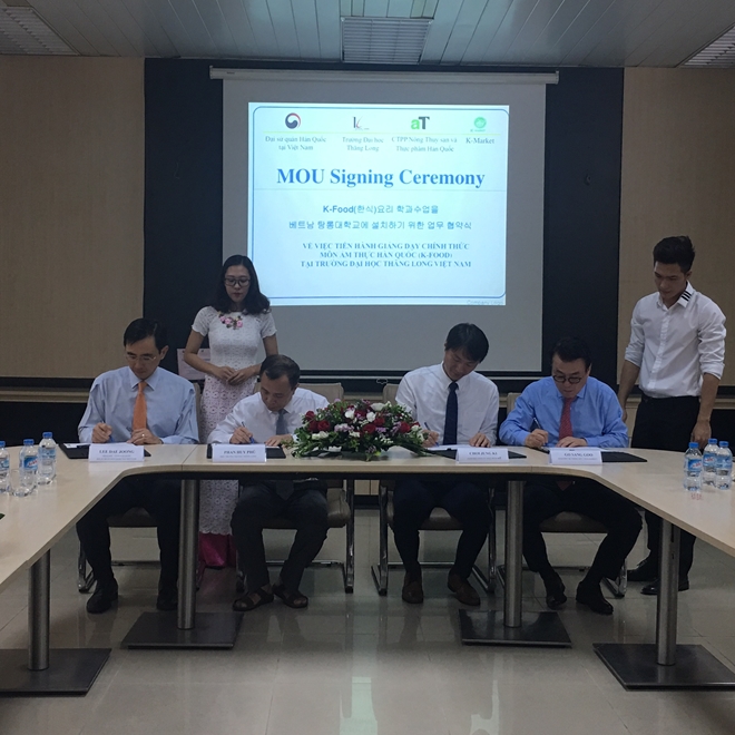 A Memorandum of Understanding (MoU) was signed on June 27 between the Korean Cultural Center, the Thang Long University, the Korea Agro-Fisheries and Food Trade Corp. and the local foodstuff firm K-Market.
