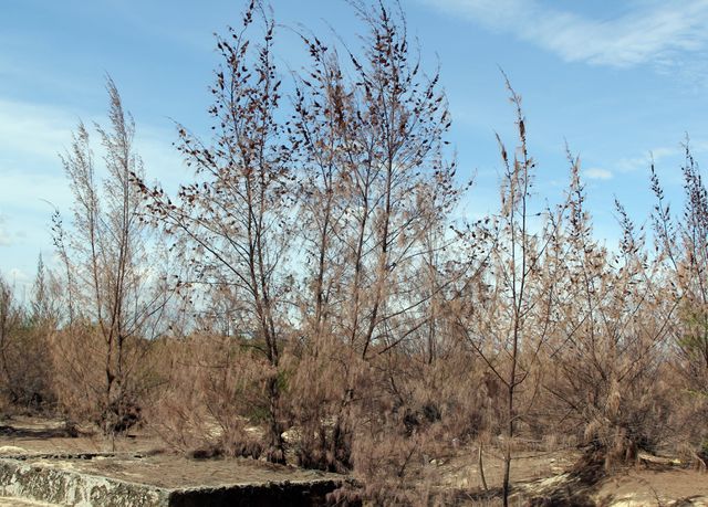 It is easy to see a large area of preventive forests along An Ninh Dong Commune in Tuy Hoa City to be almost completely dried out by droughts.