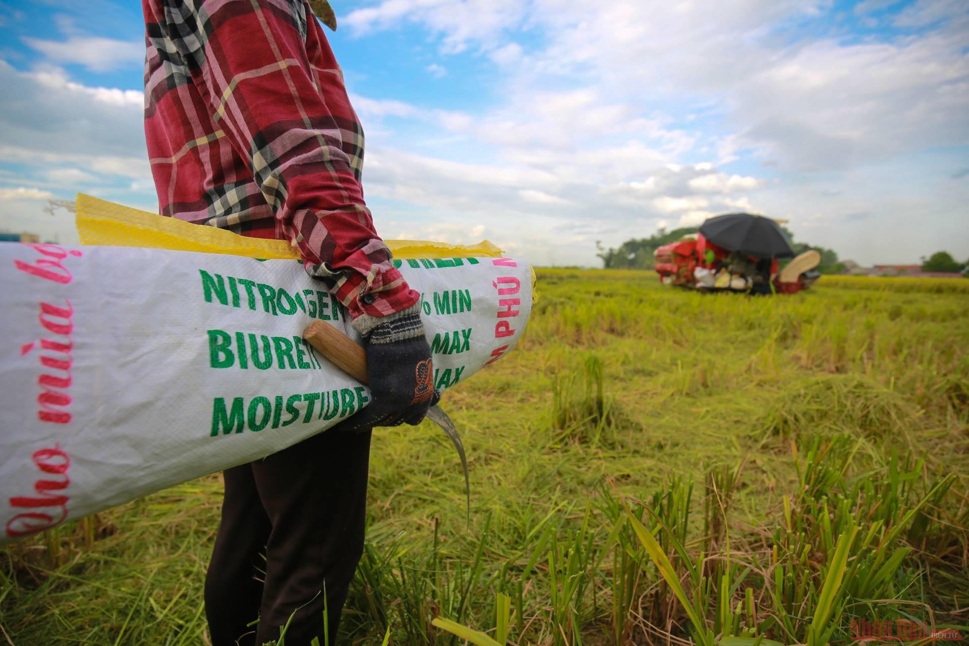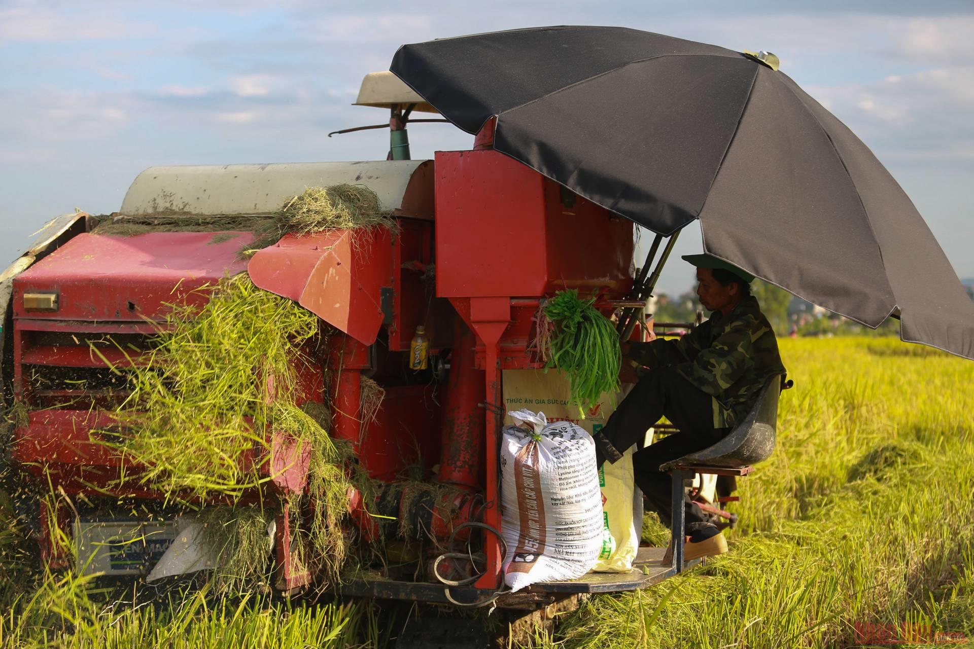 Many combine harvesters work on the rice fields at the same time during this period.